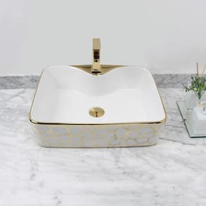 Informações Técnicas Este anuncio NÃO acompanha torneira e nem válvula. Garantia : 12 Meses Ambiente Recomendado : Área Comercial/Área Residencial Tipo de Cuba : Cuba Retangular em cerâmica de altíssima qualidade e durabilidade. Acabamento Construção e Acabamento : Esmaltado Tonalidade : Branco. Cor : Branco e Dourado Tecnologia : Smart Norte Peso kg : 10 Altura cm : 13 Largura cm : 38 Comprimento cm : 49