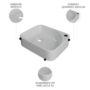 Fabricada em mármore sintético, um material composto por resina poliéster e carga mineral, com camada de Gel Coat e acabamento de pintura poliéster PU, ela é bastante semelhante à louça, porém mais econômica. A Cuba de Apoio combina resistência e durabilidade, além de já vir com furação para torneira, o que torna a instalação ainda mais prática. O acabamento em Hard Lacca PU garante brilho e proteção, proporcionando um visual sofisticado e fácil de manter.