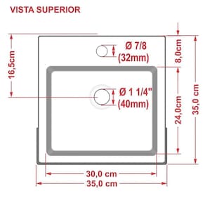 Diâmetro para válvula: 4 cm.