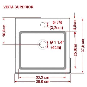 Quanto ao tamanho e material, essa cuba é compacta, medindo 39 cm x 37 cm e é produzida em mármore sintético com acabamento em Hard Lacca PU, semelhante à louça no que se refere à resistência, porém mais econômica. Outro detalhe que vale destaque é o excelente escoamento da água, o que proporciona mais higiene e eficiência. Ah, também já vem com a furação de 32mm para encaixe de torneira 7/8, tudo para facilitar a instalação da sua pia e deixar a seu banheiro mais bonito.