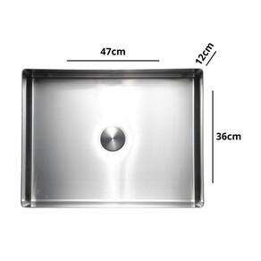 - marca stillus home - material: aço inox 304 - cor: escovado - medidas: 47x36cm - altura: 12cm - pintura eletrostática: anti-risco e anti-ferrugem - acompanha: válvula click escovada e sifão com sistema antiodor