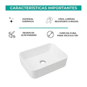 A Cuba Retangular de Cerâmica Branca 49,5x40x14cm é perfeita para quem busca um banheiro elegante, funcional e atemporal. Com design moderno e linhas retas, valoriza o ambiente e se adapta facilmente a diferentes estilos de decoração. Fabricada em cerâmica de alta qualidade, oferece resistência, durabilidade e fácil limpeza. O acabamento branco proporciona sensação de amplitude, leveza e sofisticação, combinando com diversos tipos de bancadas e metais. Indicada para instalação de apoio, garante ótimo aproveitamento do espaço e conforto no uso diário, sendo ideal para banheiros residenciais ou comerciais que exigem praticidade e estética refinada.