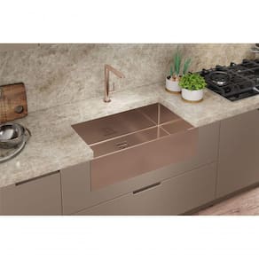 A CUBA PRIMACCORE FARM SINK em aço inox de 1.0 mm, foi pensada para um ambiente de luxo, uma cozinha de estar, pois essa cuba é glamorosa, elegante e moderna. A PRIMACCORE FARM SINK através do seu avental aparente, é uma releitura da Debacco para a cuba de fazenda. O avental pode ser instalado rente ao móvel em suas laterais, ou ser deslocado para frente.