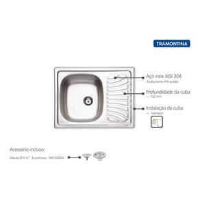 Além disso, você poderá contar com toda a qualidade que só a Tramontina oferece, pois a Cuba de Soprepor, que conta com 15,2 cm de profundidade, é produzida em Aço Inox 304, com 0,6 mm de espessura e acabamento pré-polido, garantindo a sua durabilidade e resistência.