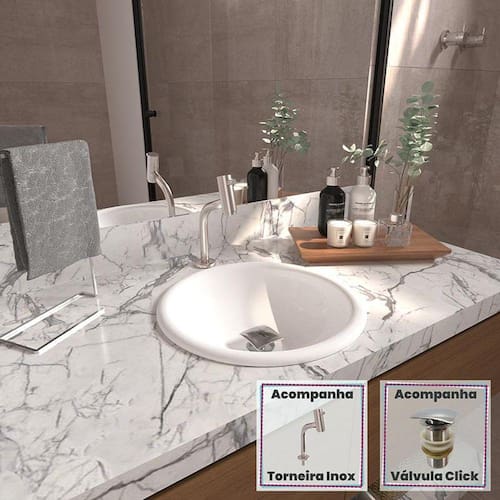 Para o modelo de sobrepor sugerimos a perfuração de 34 cm.