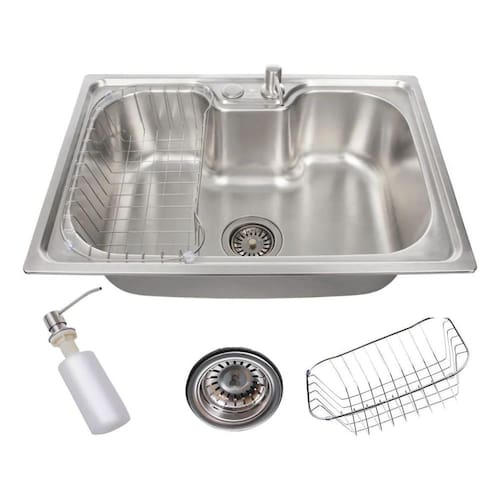 1 Cuba Gourmet Aço Inox 304 1 Cesto escorredor em Aço Inox 304 1 Dosador de detergente de 500ml em Aço Inox 304 1 Válvula de escoamento em Aço Inox 304. Marca: Não Informado