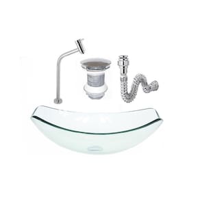 Cuba de vidro oval chanfrada 46cm jateado + valvula + torneira + sifao