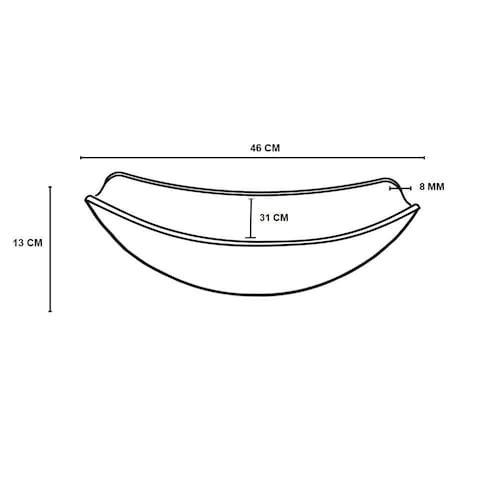 Altura : 13cm Comprimento : 46cm Profundidade : 31cm Espessura : 8mm Material : vidro temperado Modelo: apoio Furo saída de água : 4cm Formato : oval chanfrada