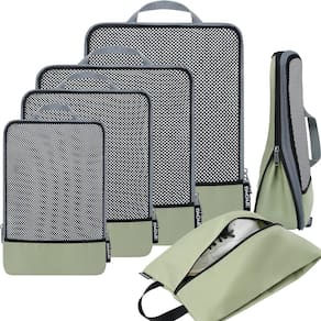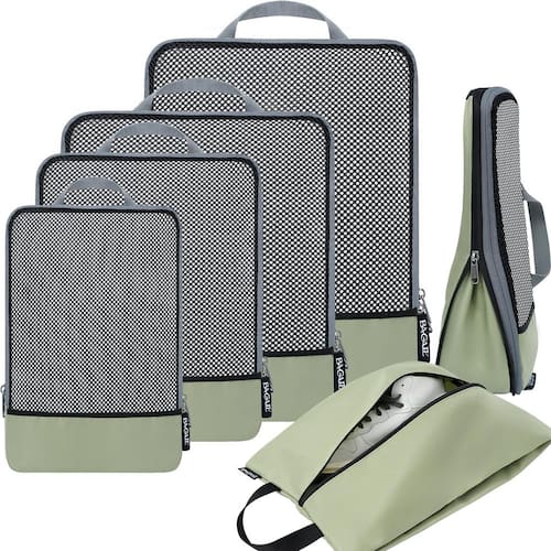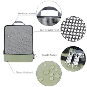 BAGAIL 4 conjuntos/6 conjuntos/8 conjuntos de organizadores de embalagem de compressão acessórios de viagem expansíveis - Como comprimir: o cubo é comprimido pelo zíper do meio; seguindo os passos: 1) Dobre e alise as roupas 2) Embale as roupas no cubo e feche o zíper frontal 3) Coloque um dedo na parte de trás do zíper do meio ao comprimir para evitar que o zíper fique preso no tecido - Tecido 320D premium: o tecido 320D de alta densidade protege as roupas de rugas e manchas; o recurso de alto desempenho garante que esses cubos de embalagem possam suportar desgaste; mas é ligeiramente mais pesado do que outros cubos de embalagem leves - Organizado e durável: o tecido 320D e o design cuidadoso garantem armazenar suas roupas perfeitamente na bagagem; o zíper de duas vias premium resistente e suave com cordão estendido garante a abertura e o fechamento rápidos e fáceis dos organizadores - Versátil e multifuncional: cubos de embalagem de tamanhos diferentes adequados para armazenar todos os tipos de produtos; pode ajudar a separar suas roupas, como jaquetas, suéteres, roupas íntimas, meias em diferentes cubos de embalagem para fácil acesso - Fácil de viajar: usar os cubos de embalagem de compressão não apenas pode utilizar o espaço limitado na mala para acomodar mais itens essenciais, mas também pode categorizar e organizar seus itens para que você possa encontrar o que quiser sempre que precisar