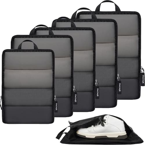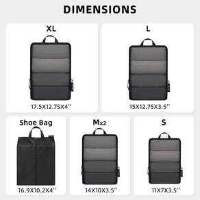 BAGAIL 4 conjuntos/6 conjuntos de organizadores de embalagem ultraleves de compressão para acessórios de viagem, mala e mochila - Como comprimir: o cubo é comprimido pelo zíper do meio; seguindo os passos: 1) Dobre e alise as roupas 2) Embale as roupas no cubo e feche o zíper frontal 3) Coloque um dedo na parte de trás do zíper do meio ao comprimir para evitar que o zíper fique preso no tecido - Durável e de alta resistência: embora o tecido que selecionamos seja leve, mas também durável o suficiente; a estrutura especial do tecido Cordura o torna resistente ao desgaste superior, resistência ao desgaste, para que eles possam usar por muito tempo - Conveniente e multifuncional: classificar e organizar seus pertences para sua viagem se tornará fácil com esses organizadores de embalagem leves; você pode escolher diferentes tamanhos e conjuntos de cores para diferentes fins de uso - Economia de espaço: economize até 50% de espaço comprimindo os cubos de embalagem através dos zíperes de compressão externos; e todos os zíperes que usamos são zíperes SBS, garantindo que os organizadores de embalagem possam ser abertos e fechados facilmente - Informações de tamanho: 1GG-44,5 x 32,4 x 10,2 cm, 1L-38 x 32,4 x 9 cm, 2M-35,5 x 25,4 x 9 cm, 1P-28 x 17,8 x 9 cm, 1 bolsa de sapato-43 x 26 x 10 cm