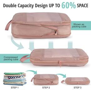 BUNNYCHILL Cubos de compressão expansíveis – os companheiros de viagem perfeitos para uma viagem organizada! Este conjunto inclui 5 cubos de viagem e 1 saco de lavanderia, todos projetados para manter suas roupas bem separadas e comprimidas, facilitando a embalagem. Economize até 60% de espaço com nosso design inovador expansível, com um zíper extra que permite que você comprima suas roupas e encaixe mais em sua bagagem. Chega de lutar com malas desordenadas! Feitos com materiais duráveis, leves e resistentes a rugas, nossos organizadores garantem que seus itens permaneçam frescos. O design de malha respirável e zíperes duplos proporcionam conveniência extra e tranquilidade. Se você estiver saindo de férias, caminhadas, acampamento ou qualquer outra aventura, estes organizadores versáteis e portáteis são a solução ideal. Elas se encaixam perfeitamente em bagagens, mochilas, bolsas esportivas, bolsas esportivas e muito mais. Experimente a alegria de fazer as malas organizadas com os organizadores de compressão expansíveis BUNNYCHILL. Peça agora e faça sua próxima viagem muito fácil. Tamanho: GG: Tamanho expandido: 43 x 30 x 11 cm (C x L x A) Tamanho comprimido: 43 x 30 cm x 2,8 cm G: Tamanho expandido: 36 x 25 cm x 11 cm (C x L x A) Tamanho comprimido: G: 14,7 x 24,9 cm x 2,8 cm - ?Cubos de embalagem de compressão expansíveis? Diga adeus à bagunça da bagagem e torne sua experiência de viagem uma brisa com os organizadores de compressão expansíveis BUNNYCHILL. Os cubos de embalagem de 6 peças contêm 5 cubos de viagem + 1 saco de lavanderia, mantém suas roupas em cubos de compressão separados e deixa sua bagagem limpa e limpa durante a viagem - ?Economize até 60% de espaço?Uso de design expansível, você pode expandir o espaço também pode ter o efeito de espaço comprimido. Feito adicionando um zíper extra ao redor do lado de fora que pode ser fechado para ajudar a esmagar as roupas e minimizar o espaço interno. É notável a diferença que eles podem fazer Ajude os viajantes a "encaixar o dobro da quantia" em suas malas. - ?Organizador de mala durável?O conjunto de sacos de embalagem é leve, resistente a rugas e bastante durável. A malha nos organizadores de bagagem oferece visibilidade sobre os tipos de itens e mantém a capacidade de respiração para manter seus itens frescos. Os zíperes duplos oferecem garantia de qualidade ao comprimir - ?6 conjuntos de cubos de embalagem de compressão? Se você estiver preparando várias opções de roupas para sua viagem, não precisará mais sacrificar o estilo pelo espaço de bagagem quando encontrar cubos de embalagem. [GG] para jaquetas, suéteres, [Grande] para calças, [Médio] para camisas, blusas, [Pequeno] para roupas íntimas. - Versáteis e portáteis: estes organizadores de bagagem são perfeitos para qualquer tipo de viagem, incluindo férias, caminhadas, acampamento e muito mais. Nossos conjuntos de 6 cubos de compressão se encaixam perfeitamente em bagagens de 61 cm acima da bagagem, bem como mochilas, bolsas de viagem, bolsas e muito mais.