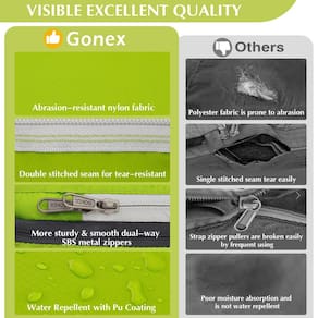 Gonex Cubos de embalagem extensíveis com 4 conjuntos. Aviso amigável Ao usar zíper expansível, a roupa interna pode ser presa com zíper. Se sim, pare de ir, mas puxe o zíper lentamente e empurre a roupa para fora ao mesmo tempo. A espuma de sabão será útil na lubrificação. Descrição do produto Cor: preto, cinza escuro, azul, verde, azul arroxeado, roxo, damasco. Material: nylon Dimensões da embalagem: 40 x 28 x 4 cm/15,7 x 11 x 1,6 pol. Peso de envio: 340 g/0,75 lbEspecificações: Tamanho: GG 44 x 33 x 9 cm/17,3 x 13 x 3,54 polegadas C 3,54 polegadas 7 x 27 x 9 cm/14,5 x 10,6 x 3,54 polegadas M 30 x 22,5 x 9 cm/11,8 x 8,9 x 3,54 polegadas P 25 x 19 x 8 cm/9,8 x 7,5 x 3,54 polegadas O pacote inclui: 1x Gonex organizadores extensíveis - 4 conjuntos - O conjunto inclui: 1x GG: 44 x 33 x 9 cm/17,3 x 13 x 3,54 polegadas, 1x C: 37 x 27 x 9 cm/14,5 x 10,6 x 3,54 polegadas, 1x M: 30 x 22,5 x 9 cm/11,8 x 8,9 x 3,54 polegadas, 1x P: 25 x 19 x 19 x 8 cm. 20 x 19 x 9 cm. - Material macio: o nylon leve e ultramacio com alta densidade e extensibilidade, juntamente com o zíper suave, torna este conjunto de cubos de compressão extremamente durável quando preenchido com Essentia - Revolucione sua embalagem: nossos cubos de embalagem facilitam a embalagem e reduzem drasticamente o espaço necessário para viagens. Chega de embalar demais! - Economia de espaço: os zíperes duplos do cubo de embalagem comprimem as roupas perfeitamente e ajudam a economizar espaço em sua bagagem de mão ou mochila de viagem. É um excelente equipamento de viagem para minimizar o tamanho da sua bagagem de mão. A alça rápida permite fácil acesso ao retirar cubos embalados de uma mala ou mochila. - Adequado para todas as ocasiões: ideal para férias em família, viagens de negócios, acampamento ao ar livre e armazenamento diário.