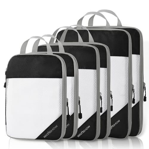 Com cubos de compressão NICOSHOW para embalar, você pode embalar de forma mais inteligente e caber mais em sua bagagem. Nosso cubo de embalagem com sistema de dois zíperes pode comprimir roupas e economizar até 60% de espaço. Estes organizadores para viagem são feitos de tecido de nylon ripstop 600D, que é leve, mas duradouro e resistente à água. Estes 7 conjuntos de organizadores de viagem contêm 3 cubos compressíveis e diferentes organizadores de viagem para itens pequenos. Mantenha suas roupas e acessórios separados e evite o incômodo de vasculhar uma mala bagunçada. Estes organizadores de compressão são ideais para todas as suas necessidades de viagem, seja para férias, caminhadas ou acampamento. Cabe idealmente em malas de mão de 50 cm e bagagem de 56 cm, bem como mochilas, bolsas esportivas e bolsas. Com um conjunto de 7 cubos de compressão para viagem, você terá tudo o que precisa para embalar como um profissional, incluindo 1 cubo pequeno, 1 cubo médio, 1 cubo grande, 1 bolsa de sapatos, 1 cubo de roupa íntima, 1 organizador de cabos e 1 saco de lavanderia - Maximize o espaço da bagagem: com cubos de embalagem de compressão NICOSHOW você pode embalar de forma mais inteligente e caber mais em sua bagagem. Nosso cubo de embalagem com sistema de dois zíperes pode comprimir roupas e economizar até 60% de espaço - Essenciais de viagem resistentes: estes organizadores de viagem são feitos de tecido de nylon ripstop 600D, que é leve, mas duradouro e resistente à água. A parte superior de malha reforçada e as costuras feitas profissionalmente garantem uso duradouro - Organize como um profissional: estes 7 conjuntos de organizadores de viagem contêm 3 cubos compressíveis e diferentes organizadores de viagem para itens pequenos. Mantenha suas roupas e acessórios separados e evite o incômodo de vasculhar uma mala bagunçada - Uso versátil: estes cubos de compressão são ideais para todas as suas necessidades de viagem, seja para férias, caminhadas ou acampamento. Cabe idealmente em malas de mão de 50 cm e bagagem de 56 cm, bem como mochilas, bolsas esportivas e bolsas - O que você receberá: com 7 conjuntos de cubos de compressão para viagem, você terá tudo o que precisa para embalar como um profissional, incluindo 1 cubo pequeno, 1 cubo médio, 1 cubo grande, 1 bolsa de sapatos, 1 cubo de roupa íntima, 1 organizador de cabos e 1 saco de lavanderia