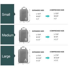 Cubos de embalagem de compressão para viagens - Cubos de embalagem de tecido premium 361D com zíperes suaves, bolsas de compressão que economizam espaço para viagens, organizadores de bagagem para - Maximize o espaço com cubos de embalagem de compressão: nossos organizadores de compressão inovadores para Travell vêm com um zíper externo extra que comprime suas roupas, semelhante a um selador a vácuo, permitindo que você economize até 50% de espaço em sua mala - Tecido 360D durável e leve: Feito de tecido 360D premium, estes organizadores para viagem são projetados para suportar o desgaste de viagens frequentes, mantendo suas roupas livres de rugas e manchas - Operação suave e fácil com zíperes premium: com zíperes suaves de alta qualidade, nossas bolsas de compressão para viagens garantem uma experiência de embalagem sem complicações, facilitando a abertura e o fechamento dos cubos de embalagem rapidamente - Solução de embalagem organizada: estes organizadores versáteis vêm em vários tamanhos para separar e categorizar suas roupas, como jaquetas, suéteres e meias, mantendo sua bagagem organizada e seus itens essenciais fáceis de encontrar - Viaje leve e inteligente: com nossos cubos de embalagem de compressão, você pode embalar com mais eficiência, otimizando o espaço limitado da mala enquanto mantém uma configuração de viagem leve e organizada, perfeita para viagens curtas e férias prolongadas