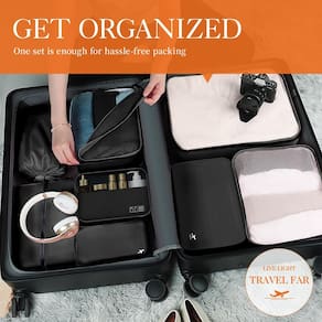 Você está cansado de colocar todos os seus itens essenciais na mala e achar que é difícil conseguir o que deseja? Não se preocupe, deixe um conjunto de organizadores de viagem ajudá-lo HOTOR organizar, organizar e encontrar suas coisas em um piscar de olhos. Diga adeus a todos os seus problemas de viagem! 1. Como um organizador de bagagem leve, os organizadores HOTOR para viagem permitem que você economize tempo valioso e espaço na mala quando estiver em movimento. Estas bolsas de embalagem servem na maioria das malas de tamanho padrão e mantêm todas as suas roupas e itens essenciais de viagem facilmente acessíveis. 2. Por serem versáteis e convenientes, estas bolsas de viagem ajudam você a se manter organizado em qualquer ambiente. Você pode levar esses organizadores para viajar em viagens de negócios, aventuras de acampamento e férias, para manter suas roupas, sapatos e outros acessórios separados, ou também usá-los em casa como organizadores de armazenamento para seus armários para manter seu armário elegante. - Organize bem HOTOR sua bagagem: com organizadores de viagem de 8 peças, embalar não é mais uma tarefa para viajar. Apenas um conjunto é suficiente para organizar todos os seus itens essenciais de viagem, como roupas, sapatos, roupas íntimas e muito mais, tornando sua bagagem limpa e em forma. Eles não são apenas essenciais para navios de cruzeiro, mas também ideais para todas as ocasiões, como férias em família, viagens de negócios, férias, caminhadas, acampamento, viagens de trailer, etc. - Versátil e flexível: os cubos de viagem HOTOR para embalar apresentam 6 tamanhos e estilos diferentes de organizadores para diferentes itens: 3 bolsas de malha, 1 bolsa de sapato, 1 bolso com cordão e 1 bolsa de roupa íntima. Além disso, estes organizadores podem ser utilizados para se manter organizados em casa, durante a viagem, e são perfeitos para acampar ou qualquer aventura ao ar livre! Você pode colocá-los facilmente em suas malas, bolsas, mochilas, bolsa esportiva etc. - LEVE E ECONOMIA DE ESPAÇO: Com a ajuda de bolsas de viagem HOTOR você pode maximizar o espaço na bagagem, criando espaço para outras coisas. Além disso, as bolsas organizadoras de viagem para bagagem são fáceis de armazenar e transportar. Elas são dobráveis e podem ser dobradas quando não estiverem em uso. O conjunto de 6 peças pesa menos de 500 g e não adiciona peso extra à sua bagagem. - Nunca se esqueça do essencial: antes de usar estes organizadores para malas de mão, você esqueceu frequentemente um ou dois dos seus itens essenciais com você ao sair? Agora é hora de dizer adeus ao descuido! Deixe que os organizadores HOTOR ajudem você a organizar todos os itens essenciais de viagem e contê-los em ordem! - Qualidade premium: com tecido de alta densidade e resistente à água, estas bolsas organizadoras de viagem para bagagem podem proteger suas roupas de rugas, manchas e umidade. Além disso, tenha certeza de que os zíperes de metal são feitos para durar com o uso frequente. Os zíperes bidirecionais alargados de 5 mm deslizam suavemente sem travar e travar.