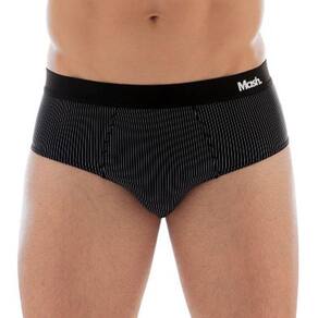 Cueca slip fabricada pela Mash em microfibra. Possui a sofisticação da risca de giz aliada ao pleno conforto do tecido em microfibra, que permite a "respiração" da pele sem abafar ou incomodar. Modelo tradicional e confortável para o dia a dia, além do tecido ser sedoso é prático, não amassa e é fácil para lavar e secar.