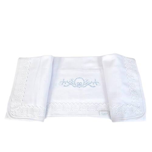 Cueiro Aflanelado Bordado Com Bord. Ingles - Laco Azul