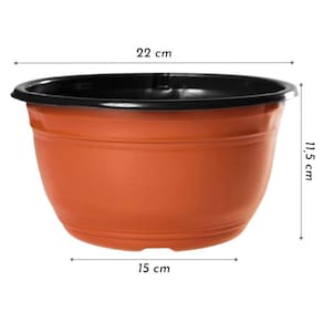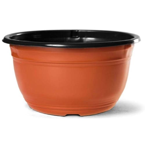 Características * Tamanho: NC22 * Altura: 11,5 cm * Largura (boca): 22 cm * Largura (fundo): 15 cm * Capacidade: 2,9 Litros * Formato: Redondo * Cor: Ceramica/Preto * Material: Plástico FlexívelInformações/Dicas/Usos * Leve e prática. * Novo método de produção industrial que alia qualidade, beleza e baixo custo. * Facilita o manejo e a produção de flores e folhagens.