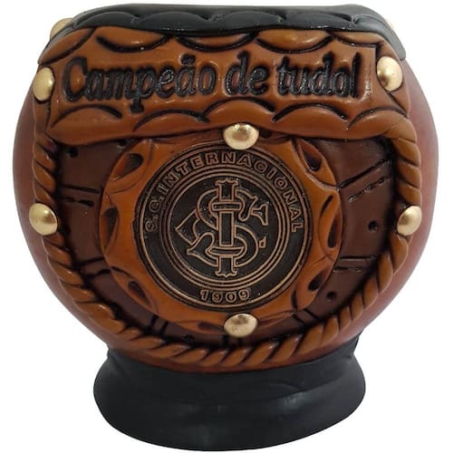 Desfrute seu chimarrão com qualidade, sabor e tradição! #Cuia Para Chimarrão #Produto Licenciado #Internacional Garantia: 90 dias / Peso: 100g / Cor: Bege, Marrom e Preto / Ref: 84009I Dimensões da Cuia: 9cm (C) x 6cm (L) x 11cm (A). Dimensões do Bocal: Aproximadamente 5,5cm (C) x 3cm (L). Cuidados: A cuia já está curtida, ou seja, pronta para o uso, basta lavar com esponja macia e sabão neutro e fazer o chimarrão. A água a ser usada não deve ultrapassar os 75º, não utilizar água fervendo. Capacidade: Aproximadamente 200ml. *A cuia é produzida com materiais naturais, por isso podem ocorrer pequenas variações de traços, tonalidades e tamanho. *Não acompanha Bomba. Material: - Resina; - Porongo. Essa cuia estilo uruguaia é ideal para quem é apaixonado por futebol, é torcedor do Internacional e adora beber chimarrão. A cuia gajeta é produzida de forma artesanal em porongo de formato coquinho com detalhes feitos manualmente e com escudo do Internacional. Essa cuia de chimarrão é um produto licenciado ideal para seu momento de matear ou para presentear um amigo querido que é louco pelo Inter. Desfrute a tradição de beber um chimarrão com uma típica cuia gaúcha de qualidade e beleza sem iguais.
