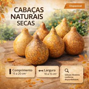 Material: Cabaça natural Comprimento: 15 a 20 cm (aproximado) Diâmetro: 10 a 15 cm (aproximado) Condição: Seca e fechada Seleção: Aleatória conforme disponibilidade