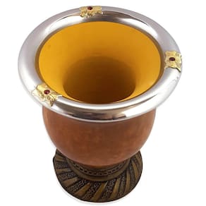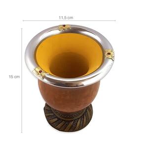 Esta cuia tradicional vai tornar seu chimarrão ou tererê muito mais prazeroso. Leve e elegante, ela se encaixa perfeitamente na sua mão. A cuia tem tamanho médio, seu chimarrão não ficará muito curto e nem muito longo, tornando a roda muito mais dinâmica sem longas filas de espera pelo mate. Produzida de forma artesanal a cuia é lisa, vem com tripé embutido. Há também detalhes no bocal, deixando para você escolher a que mais te identifica. Tradição que é passada de geração para geração, unindo pessoas e distribuindo amizade.