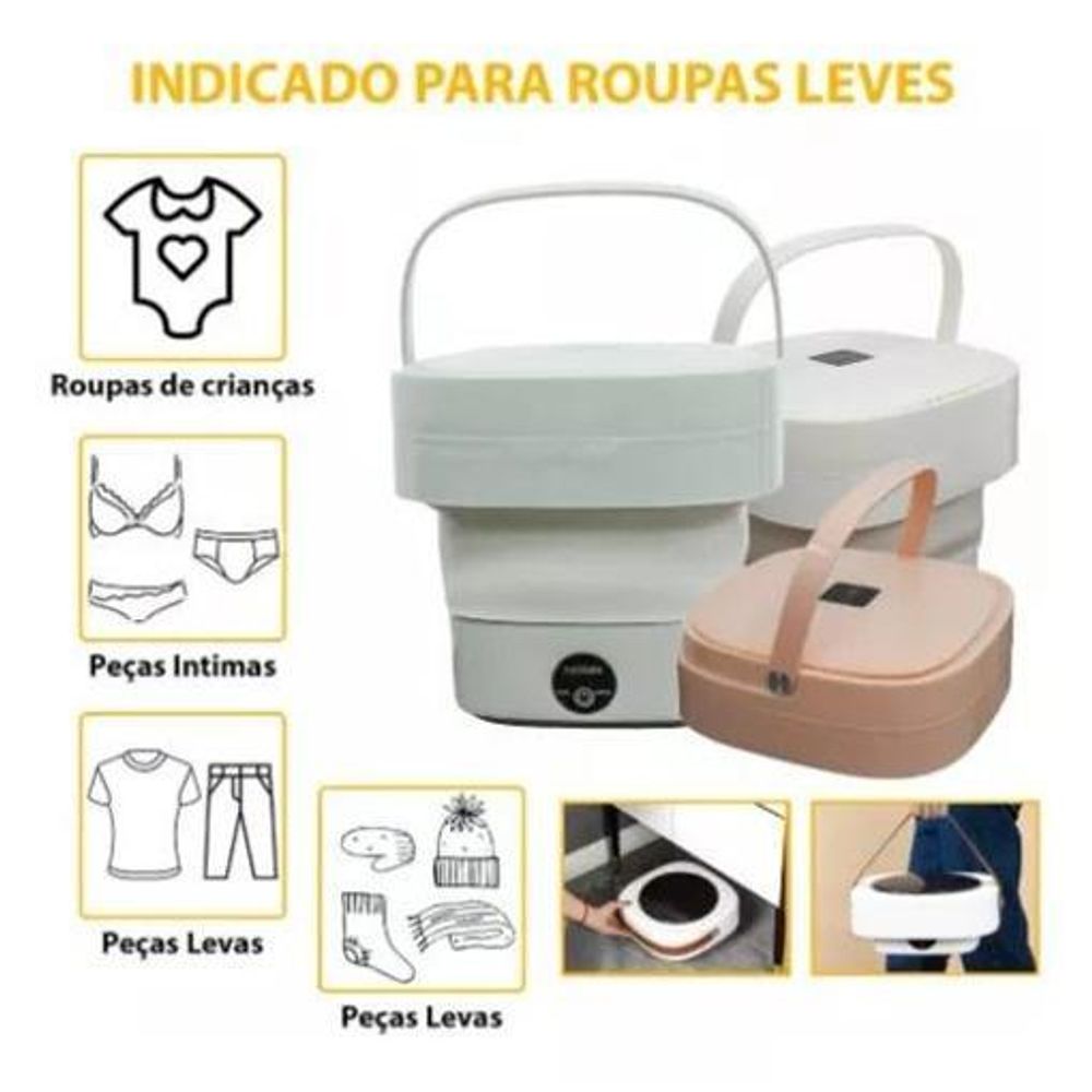 Cuidado íntimo em casa: mini máquina de lavar roupas íntimas no balde portátil lavadora 110v Design dobrável: a máquina de lavar portátil dobrável é pequena e conveniente para guardar embaixo, no banheiro ou em qualquer lugar, como dormitórios, apartamentos, trailers, camping, viagens e lavanderia. Material durável: a máquina de lavar dobrável é feita de material de alta resina, que pode ser por muito tempo. Vários modos: motor potente, 6,5 l de grande capacidade, 3 modos de limpeza: limpeza rápida, limpeza padrão, varredura; cesto de água para secagem roupas. Uso versátil: esta pequena máquina de lavar pode lavar itens pequenos, como roupas íntimas, roupas de bebê, Toalhas, etc. Nota: não leve roupas pesadas, como suéteres, lençóis, etc. O cesto de drenagem pode evitar a etapa de torcer as roupas, o que é conveniente e rápido. Tamanho:30cmx24cm Voltagem: 110/127v Pacote inclui: 1 Máquina de lavar dobrável 1 Cesto de drenagem 1 Tubo de drenagem 1 Plugue de carregamento Cores conforme disponiblidade em Marca: Não Informado