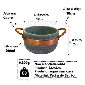 Cumbuca Alça de Cobre Pedra Sabão Tigela Caldo Sopa 500ml