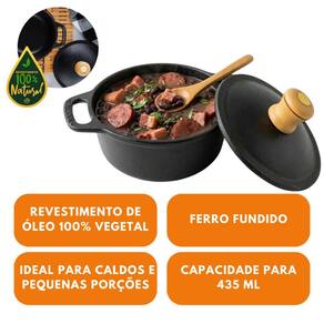 Fabricada em ferro fundido, possui ótima retenção de calor, ajudando a manter os alimentos aquecidos por mais tempo, preservando o sabor e a qualidade das preparações. Ideal para preparo e serviço de caldos, feijão, polenta, molhos e pequenas porções de alimentos.