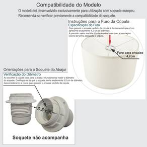 É exclusivamente para fixação do soquete bocal furo 4,2cm. O produto composto apenas a cúpula, não acompanha abajur. Resistente á maresia, garantia 1 ano após recebimento. Sua utilização para bases e pedestal de abajur, abajur de quarto, abajur de sala, abajur de cabeceira, abajur moderno, luminárias e pendentes.