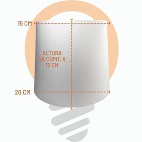 Om luz Especializada na fabricação de acessórios e componentes para iluminação, nossos produtos são confeccionados em materiais com qualidade e resistência, atendendo as normas do mercado com uma variedade de opções ao seu critério e gosto. --------------------------------------------------------------------------------------------------------------------- Cúpula de tecido, arame pintado de branco para soquete nacional. --------------------------------------------------------------------------------------------------------------------- Medidas Boca de cima: 15 cm Boca de baixo: 20 cm Altura: 15 cm Encaixe do soquete: 35mm