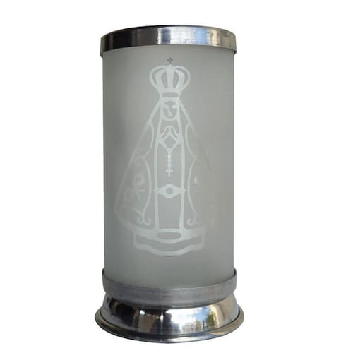 Cúpula de vidro Nossa Senhora Aparecida porta vela jateado Nossa Senhora Aparecida é a Padroeira do Brasil, a Mãe dos pescadores e Mãe de cada um de nós. Ela apareceu nas águas do Rio Paraíba, durante um dia de pesca e desde então pela sua intercessão milagres são realizados ao redor do mundo. A Cúpula Jateada Nossa Senhora Aparecida é feita em vidro e alumínio, mede 9x18x9 cm, e é o recipiente perfeito para você colocar a vela votiva e fazer as suas orações diariamente, pedindo a proteção e a intercessão da Virgem Maria sobre sua vida e toda sua família. Produto é despachado bem embalado em embalagem própria com isopor.Material: Vidro e alumínioAcabamento: Jateado com imagem vazada e alumínio repuxadoCódigo de Barras: 7908006600145Cor: FoscoLargura m : 0.100000Altura m : 0.100000