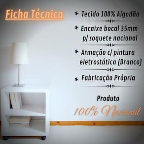 Cúpula de tecido, arame pintado de branco para soquete nacional. -------------------------------------------------------------------------------------------------------------------- Medidas Boca de cima: 40 cm Boca de baixo: 40 cm Altura: 28 cm Encaixe do soquete: 35mm Garantia Contra defeitos de fabricação. Envio Loja de fábrica Marca: Om Luz