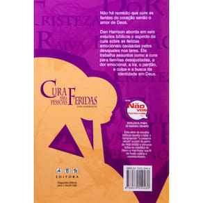 Cura para pessoas feridas, dan harrison - abu editora Não há remédio que cure as feridas do coração senão o amor de deus. Dan harrison aborda em seis estudos bíblicos o aspecto da cura sobre as feridas emocionais causadas pelos desajustes nos lares. Ele trabalha assuntos como a cura para famílias desajustadas, a dor emocional, a ira, o perdão, a culpa e a busca da identidade em deus.