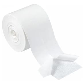 As secreções das feridas passam diretamente para a camada absorvente da cobertura que está sendo fixada pela fita, intensificando o processo de limpeza da ferida. A tela branca de não tecido, recoberta com adesivo acrilato não irritante permite a passagem de ar.