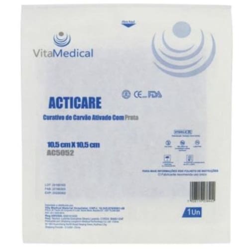Curativo Carvão Ativado mais Prata 10,5x10,5cm Acticare Ag Vitamedical Recortável
