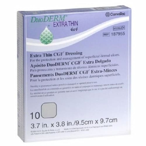 Descrição do Produto O curativo Duoderm Extra Thin é um curativo hidrocolóide indicado para o tratamento de feridas com exsudação leve. Duoderm CGF Extra Thin é um curativo hidrocolóide retentor de umidade para feridas superficiais com pouco ou nenhum exsudato e para intervenção precoce em pessoas com risco de ruptura da pele. Ele combina uma formulação exclusiva de hidrocolóide ConvaTec que o distingue de outros curativos hidrocolóides e uma película externa permeável ao vapor para fornecer um ambiente úmido oclusivo. Benefícios do produto Sugestões de ingredientes Nota especial Avisos Isenções de responsabilidade: 1. Oferecemos produtos de marca nacional que são produzidos de acordo com os padrões de fabricação estabelecidos pelos reguladores a preços baixos todos os dias. Não use produtos não comprovados e sem marca, que podem representar sérios riscos à sua saúde.