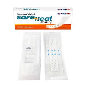 Curativo visível safe heal post-op 10x30 5x25 30un kelogel Tamanho: 10x30cm O curativo visível safe heal post-op kelogel é um curativo estéril com design inovador que permite monitorar feridas sem trocas desnecessárias. É translúcido, maleável, impermeável e possui uma almofada de espuma em formato de colmeia para visibilidade. Sua aplicação é facilitada por tiras destacáveis e um filme de poliuretano.