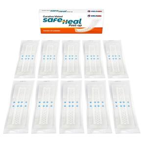 Curativo visível safe heal post-op 10x30 5x25 50un kelogel Tamanho: 10x30cm O curativo visível safe heal post-op kelogel é um curativo estéril com design inovador que permite monitorar feridas sem trocas desnecessárias. É translúcido, maleável, impermeável e possui uma almofada de espuma em formato de colmeia para visibilidade. Sua aplicação é facilitada por tiras destacáveis e um filme de poliuretano.