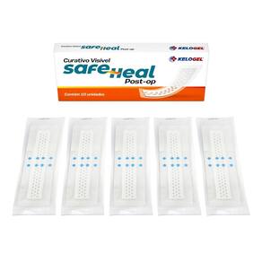 Curativo visível safe heal post-op 10x30 5x25 5un kelogel Tamanho: 10x30cm O curativo visível safe heal post-op kelogel é um curativo estéril com design inovador que permite monitorar feridas sem trocas desnecessárias. É translúcido, maleável, impermeável e possui uma almofada de espuma em formato de colmeia para visibilidade. Sua aplicação é facilitada por tiras destacáveis e um filme de poliuretano.