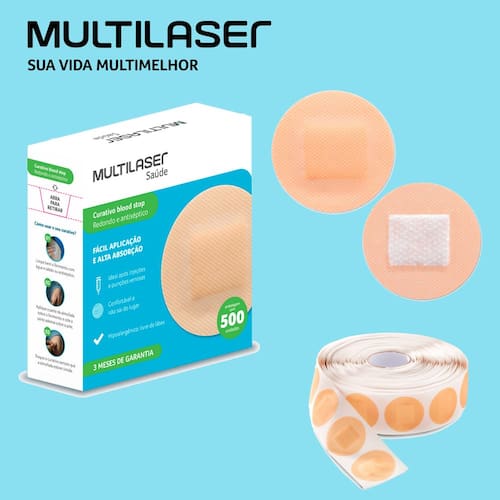 Os curativos redondos blood stop Multilaser Saúde oferecem maior proteção contra possíveis infecções em pequenos ferimentos e param o sangramento depois de injeções e punções venosas.