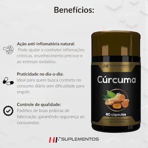 Através deste anúncio, você está adquirindo 1 um pote de cúrcuma 60 cápsulas hf suplementos