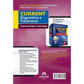 O volume do Current Diagnóstico e Tratamento – Gastroenterologia e Hepatologia foi criado com base na edição brasileira do Current Diagnóstico e Tratamento – Abordagem prática, 64ª edição. Foram selecionados 2 capítulos da área de Gastroenterologia e Hepatologia para elaborar este livro: • Distúrbios gastrointestinais. • Distúrbios do fígado, via biliar e pâncreas. Principais características deste livro: • Avanços médicos atualizados. • Apresentação detalhada de alguns temas de Gastroenterologia e Hepatologia, além de temas essenciais da atenção primária. • Formato de fácil consulta, permitindo uso eficiente em qualquer ambiente de prática clínica. • Acesso rápido a dosagens de medicamentos. • Referências recentes, com identificadores únicos (PubMed, números PMID) para acesso rápido de resumos e, em alguns casos, artigos completos. Marca: Não Informado