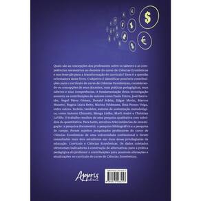 Quais são as concepções dos professores sobre os saberes e as competências necessários ao docente do curso de Ciências Econômicas e sua inserção para a transformação do currículo? Essa é a questão orientadora deste livro. O objetivo é identificar possíveis contribuições para o currículo do curso de Ciências Econômicas, considerando-se concepções de seus docentes, suas práticas pedagógicas, seus saberes e suas competências. A fundamentação desta investigação assumiu as contribuições de autores como Paulo Freire, José Sacristán, Ángel Pérez Gómez, Donald Schön, Edgar Morin, Marcos Masetto, Regina Lúcia Brito, Marina Feldmann, Ilma Passos Veiga, entre outros. Incluiu, também, autores de sustentação metodológica, como Antonio Chizzotti, Menga Lüdke, Marli André e Christian LaVille. O trabalho resultou de uma pesquisa qualitativa com subsídios da quantitativa. Para tanto, envolveu três instâncias de investigação: a pesquisa documental, a pesquisa bibliográfica e a pesquisa de campo. Foram sujeitos pesquisados professores do curso de Ciências Econômicas de uma universidade confessional e foram consultados mais dois estudiosos nas duas áreas privilegiadas da educação: Currículo e Ciências Econômicas. Os dados coletados ofereceram indicadores à construção de alternativas para a prática pedagógica do professor e contribuições para possíveis alterações e atualizações no currículo do curso de Ciências Econômicas.