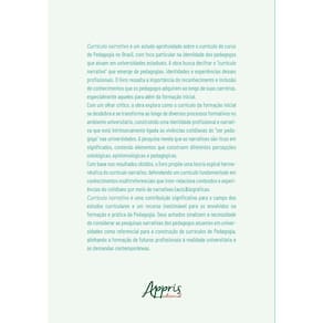 Currículo narrativo é um estudo aprofundado sobre o currículo do curso de Pedagogia no Brasil, com foco particular na identidade dos pedagogos que atuam em universidades estaduais. A obra busca decifrar o “currículo narrativo” que emerge de pedagogias, identidades e experiências desses profissionais. O livro ressalta a importância do reconhecimento e inclusão de conhecimentos que os pedagogos adquirem ao longo de suas carreiras, especialmente aqueles para além da formação inicial. Com um olhar crítico, a obra explora como o currículo da formação inicial se desdobra e se transforma ao longo de diversos processos formativos no ambiente universitário, construindo uma identidade profissional e narrativa que está intrinsecamente ligada às vivências cotidianas do “ser pedagoga” nas universidades. A pesquisa revela que as narrativas são ricas em significados, contendo elementos que constroem diferentes percepções ontológicas, epistemológicas e pedagógicas. Com base nos resultados obtidos, o livro propõe uma teoria espiral hermenêutica do currículo narrativo, defendendo um currículo fundamentado em conhecimentos multirreferenciais que inter-relaciona conteúdos e experiências do cotidiano por meio de narrativas (auto)biográficas. Currículo narrativo é uma contribuição significativa para o campo dos estudos curriculares e um recurso inestimável para os envolvidos na formação e prática da Pedagogia. Seus achados sinalizam a necessidade de considerar as pesquisas narrativas dos pedagogos atuantes em universidades como referencial para a construção de currículos de Pedagogia, alinhando a formação de futuros profissionais à realidade universitária e às demandas contemporâneas.