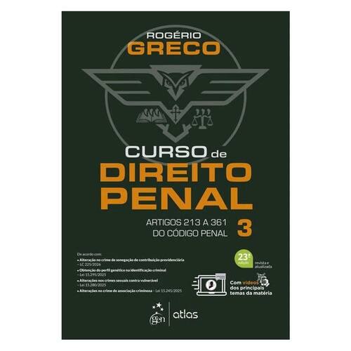 Fruto de um intenso trabalho de pesquisa teórica, conjugado com a experiência prática do autor, o Curso de Direito Penal, volume 3, tem a finalidade de trazer ao leitor, de maneira didática, clara e aprofundada, discussões sobre os artigos que envolvem a Parte Especial do Código Penal, especificamente os arts. 213 a 361. O autor, que durante aproximadamente 30 anos atuou no Ministério Público de Minas Gerais, sempre lidando com a área penal, conseguiu reunir neste volume as discussões doutrinárias mais importantes e atuais, sem descuidar das mais modernas posições de nossos Tribunais, sobretudo os Superiores. O livro encontra-se atualizado com todas as modificações legislativas ocorridas no ano de 2025, permitindo um estudo seguro e completo dos arts. 213 a 361 do Código Penal. A obra, frequentemente citada pelos nossos Tribunais Superiores e indicada por várias bancas de concursos públicos, serve de norte não somente para aqueles que estão concluindo o curso de Direito, mas também para os que almejam prestar concursos na área jurídica, bem como para os profissionais que militam na área das Ciências Penais. Com certeza, trata-se de um dos mais completos estudos já realizados sobre a Parte Especial do Código Penal, consagrado, agora, em sua 23ª edição.