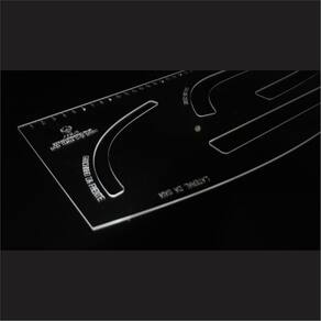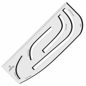 A curva para corte e costura 50 cm é uma ferramenta bastante versátil e completa para desenho técnico de modelagem utilizada para facilitar o traçado de curvas de vestuário. A curva permite desenhar e ligar curvas, de maneira que elas fiquem perfeitamente encaixadas. É formada por uma curva alta em um dos lados e uma reta paralela no outro com graduação, além disso ela possue em sua parte interna gabaritos das principais partes das modelagens como: decote, gancho frente e costa, cava frente e costa e lateral saia.