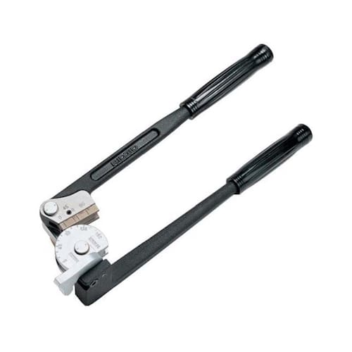 O braço fixo alinha o tubo e pode ser fixado num torno para curvar tubos de material duro. Tem escalas para indicar os graus, assim como, para medir o tubo antes de cortar evitando desperdício. Faz curvas em tubos de Cobre macio e duro, Latão, Alumínio e Aço até 180º.
