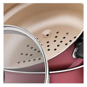 Cuscuzeir0 cozi vapor 16cm turim vermelho tramontina Referência 20266/716 Diâmetro 16 cm Capacidade 1,8 litros A linha turim sempre faz sucesso na sua cozinha. Além da praticidade do cozimento uniforme, proporcionado pelo revestimento interno e externo de antiaderente starflon t1, elas permanecem bonitas por muito mais tempo. São fáceis de limpar, pois, devido ao antiaderente, os alimentos não grudam. Podem ser utilizadas em fogão a gás, elétrico e vitrocerâmico resistência elétrica e levadas à máquina de lavar louças. Uso seguro e adequado Ao utilizar utensilios quentes tenha cuidado redobrado. Se necessário, utilize proteção para as mãos e mantenha fora do alcance de crianças. Para sua segurança, ao utilizar utensílios com cabos, mantenha os mesmos sempre voltados para o centro do fogão. Ao utilizar seu utensílio em fogões com grade, mantenha a peça centralizada e alinhe o cabo com a grade, para reduzir o risco de queda. Para descarte dos produtos e embalagens siga as orientações de reciclagem vigentes.Alumínio com revestimento interno e externo de antiaderente starflon t1. Alças de baquelite antitérmico e pegador de nylon. Tampa de vidro.