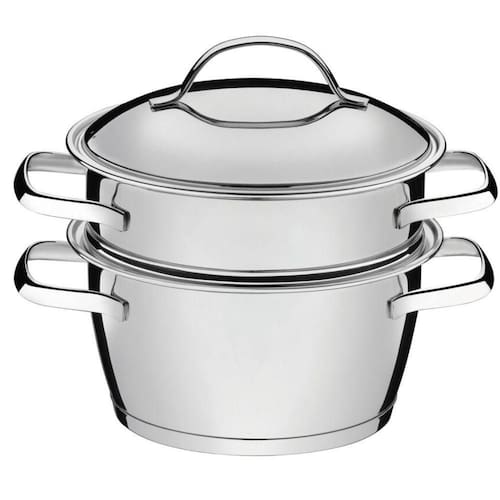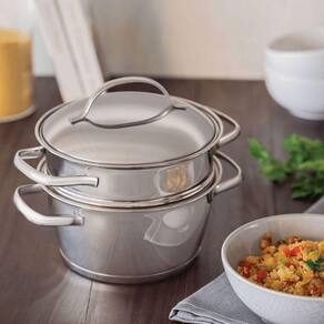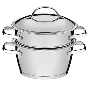 Cuscuzeira Allegra para Preparo de Cuscuz em Aço Inox com Fundo Triplo e Duas Peças Uso em Fogão Inox Tramontina