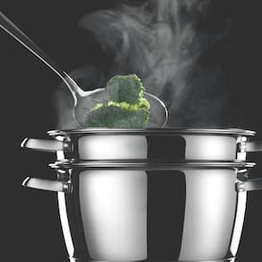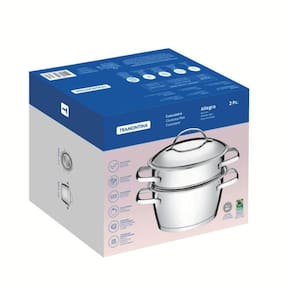 Prepare cuscuz e outras receitas com a cuscuzeira Tramontina Allegra em aço inox, ideal para o uso diário na cozinha. Com fundo triplo, oferece cozimento rápido e uniforme, trazendo mais praticidade ao preparo de cuscuz, sopas e caldos. Suas duas peças facilitam o uso e a montagem, enquanto a tampa com saída de vapor contribui para um cozimento mais controlado. Compatível com todos os tipos de fogão, inclusive por indução, adapta-se facilmente a diferentes cozinhas. A possibilidade de ir à lava-louças torna a rotina de limpeza mais simples e eficiente.